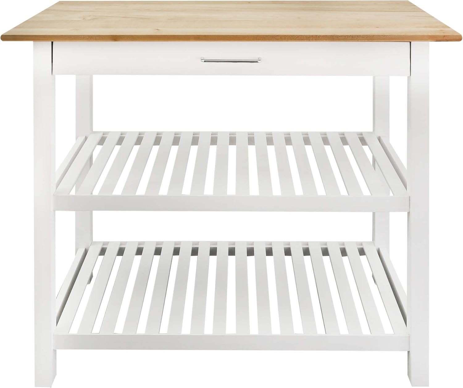 Introducing the Casual Home Kitchen Island with Solid American Hardwood Top, the perfect addition to any kitchen or dining space. This beautifully crafted island features a natural and white finish that adds a touch of elegance to any room.